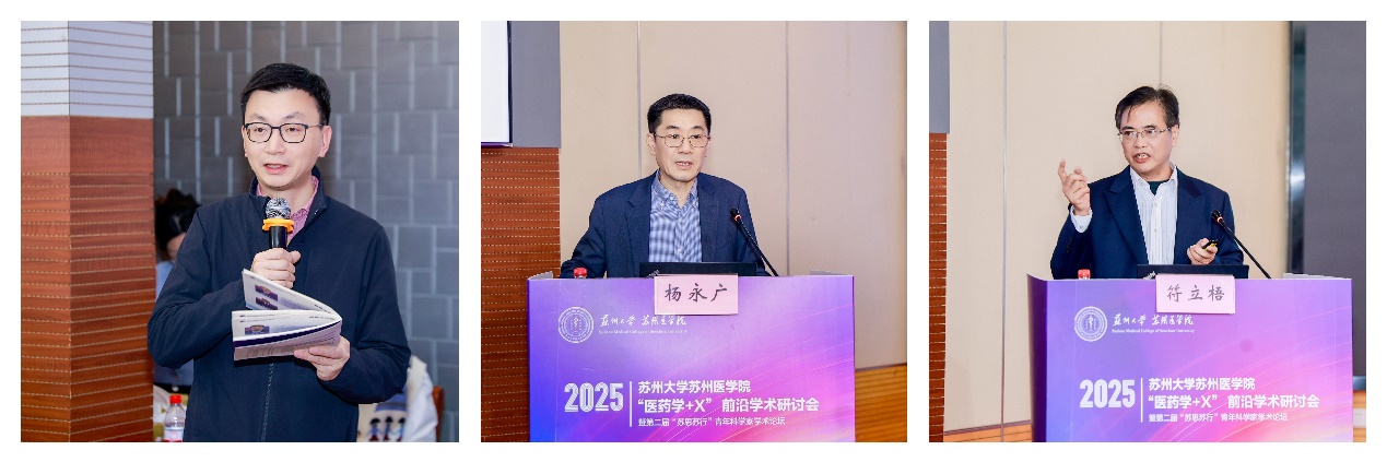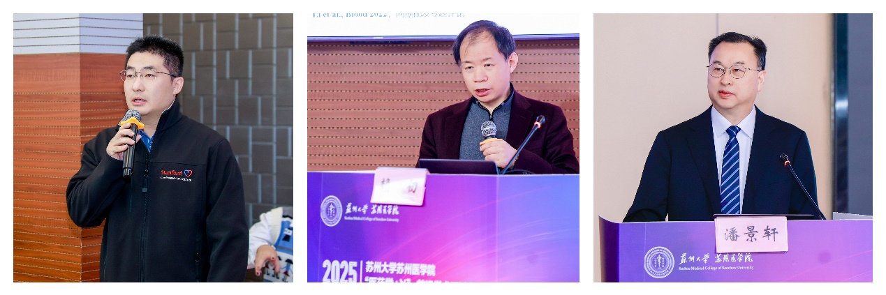 张正彪校长代表学校向远道而来、传经送宝的各位专家致以最热烈的欢迎,并对长期以来支持苏州大学医学事业发展的学界朋友表示衷心感谢,同时向怀揣梦想、锐意进取的全体青年学者与师生致以最诚挚的问候,并简要介绍了学校近年来取得的科技创新、人才培养成果。张校长强调,“医药学+X”的前沿领域交叉融合,不仅是攻坚克难、应对重大疾病挑战的关键路径,更是驱动生物医药产业动能转换、服务“健康中国”宏伟战略的核心支点。学校也将持续为跨学科合作与青年人才培育提供坚实保障。李斌院长重点介绍了苏州医学院自四方共建以来在学科建设、科研创新、人才培养等方面的战略规划和重大进展,特别是省市校共建的生物医药交叉创新、产学研用一体化的重大科技平台立项,开启了苏州医学院深化交叉融合、有组织科研和推进成果转化服务区域经济和人民健康的新阶段。同时希望以此次会议为契机,和与会专家开展多层次多方式深度合作,相互促进,共同为我国医药事业创新发展贡献力量。
