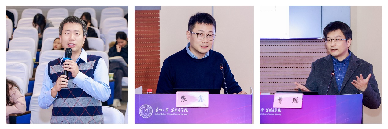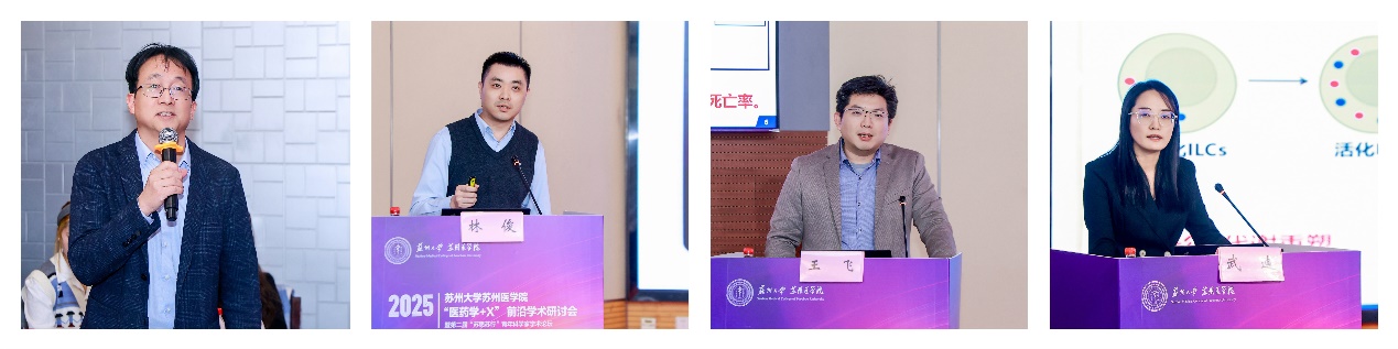 接下来的苏州医学院青年才俊快闪报告环节,由黄玉辉教授和许国强教授共同主持。苏大附属第四医院林俊教授探讨“软骨钙质沉着症与骨关节炎”,结合临床病例与基础研究,分析了软骨钙质沉积与关节退变的关联性及病理机制,为疾病的早期诊断标志物筛选与靶向治疗策略制定提供了科学依据;苏大心血管病研究所王飞教授以“心肾代谢综合征与血压稳态维持”为题,介绍了高血压的研究从SPRINT时代转向CKM时代的演进,系统阐述了心肾代谢网络与血压调控的相互作用通路,为整合心肾代谢调节与血压控制的综合治疗方案提供了新视角;苏大转化医学研究院武迪教授阐述“免疫代谢与黏膜炎症调控”, 聚焦黏膜组织免疫细胞的代谢重编程现象,揭示了代谢产物对炎症反应的调控网络,为炎症性肠病、呼吸道黏膜炎症等疾病的靶向药物研发提供新的有效途径;苏大药学院叶娜教授分享“基于靶标结构的脑疾病药物发现”,通过结构生物学结合AI技术,解析了脑疾病关键靶标(如神经递质受体)的三维晶体结构,实现药物分子的精准设计与优化,为阿尔茨海默病、帕金森病等神经退行性疾病治疗提供了新策略;苏大药学院李佳斌教授讲解“染色质泛素化的化学构建”,建立了高效、特异性的染色质泛素化修饰化学模拟体系,为表观遗传学调控机制研究及相关工具分子开发提供了重要技术支撑;苏大神经科学研究所戴熙慧敏教授深入阐述“睡眠需求的感知与整合机制”,围绕睡眠调控相关神经环路的信号传导与整合规律,揭示了睡眠需求感知的分子与神经基础,为理解睡眠调控机制以及干预睡眠障碍提供了新视角。