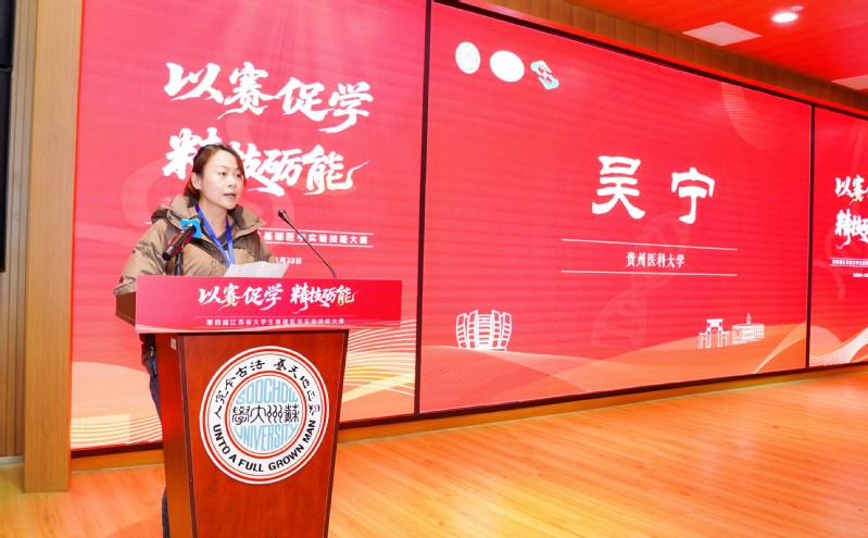 贵州医科大学实验中心主任吴宁作为参赛高校代表发言,她向大家分享了此次比赛中的感受与收获,表示此次比赛是一次极具价值的学习与交流之旅,为后续的教学工作指明了方向,也感谢大赛主办方及承办单位为大家提供了交流切磋的平台。