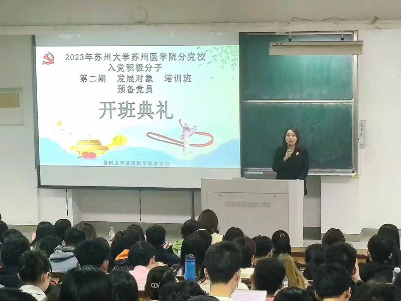 最后,主持人详细介绍了本期党校的培训流程安排、培训内容和考核方法。至此,2023年苏州大学苏州医学院分党校第二期入党积极分子、发展对象及预备党员培训班开班典礼暨示范党课圆满结束。(责编:孙静)