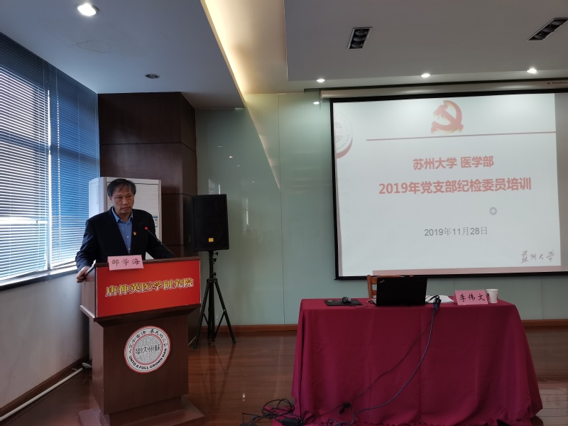 首先,医学部党工委邹学海书记讲话,他从全面从严治党的提出,到新时代党的政治建设、纪律建设的内容要求,尤其对医学部新形势下加强基层党组织建设提出了新的具体要求,并对纪检委员提出要忠诚使命、严守纪律、重视学习、不断提升素质;要强化担当、善于作为、清正廉洁、树好形象;要善学善思、学以致用,不断提高纪检监察业务水平。