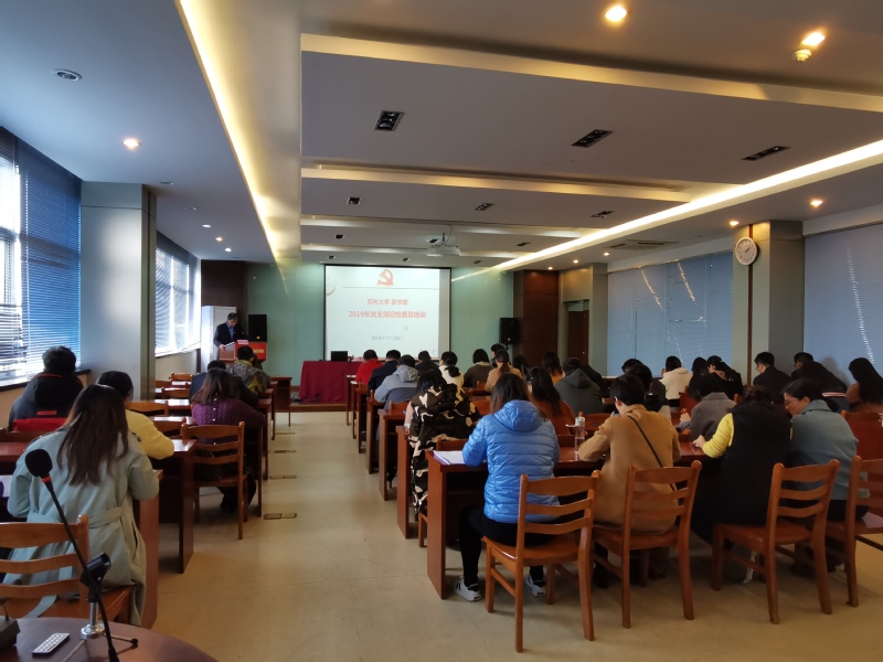根据全省、学校《新时代江苏高校党支部建设“提质增效”三年行动计划”(2019-2021)》的通知精神,在“不忘初心、牢记使命”主题教育期间,医学部对基层党支部组织建设进行自查整改工作,增补了部分支部纪检委员。为了深入贯彻学习领会党的十九届四中全会精神,进一步加强医学部纪检监察队伍的履责尽职的能力水平,2019年11月28日下午,在703号楼502会议室,医学部党工委组织各学院、研究院所全体党支部共六十余名纪检委员进行了专题培训。培训会由医学部党工委专职组织员李恩秀主持。