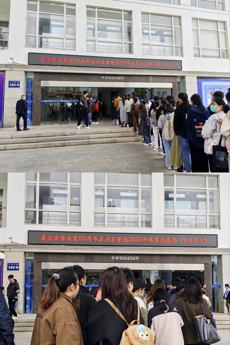 为贯彻落实党中央、国务院关于2024届高校毕业生就业工作的决策部署,搭建生物医药卫生类人才求职平台,进一步促进我校毕业生就业,于2023年11月11日,在苏州市人才市场举办“江苏省2024届高校毕业生秋季校园招聘月苏州大学2023年秋季生物医药卫生类人才专场招聘会暨苏州医学院2024届毕业生大型双选会”。