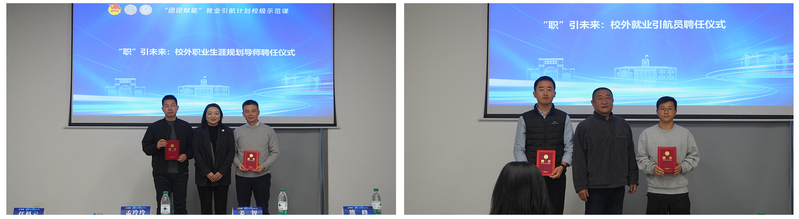 为巩固活动成果,现场举行了校外职业生涯规划导师与校外就业引航员聘任仪式。孟玲玲为任科云、熊峰颁发职业生涯规划导师聘书。温洪波为田江海、李柏松颁发就业引航员聘书。此举标志着院企协同育人机制迈向制度化,未来将为学子提供一对一咨询、实习推荐等持续性服务。