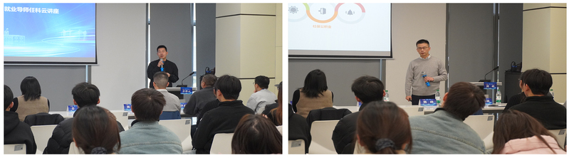 在“职”日可待主题讲座环节,两位资深行业导师分享了前沿洞察:任科云导师结合生物医药领域发展现状,剖析了行业动态与人才需求方向;熊峰导师从企业用人视角,系统讲解了简历优化、面试技巧及职业成长规划。他们的分享为学生厘清了职业定位,提供了可操作的就业方法论。