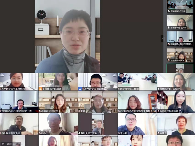 立足新起点,开启新征程,为进一步推进苏州医学院高质量发展,加快完善医学人才培养体系,全面提升人才培养质量,学习借鉴国内一流医学院校在学生工作方面的宝贵经验和成功做法,3月24日,苏州大学苏州医学院与北京大学医学部开展线上“云”调研,重点就医学生培育模式、管理教育队伍与结构、团建党建的设置方式及工作机制、与各学院和附属医院间的协作管理机制、班主任评聘以及立德树人特色举措等方面进行了交流。
