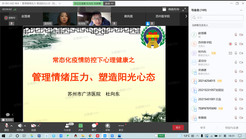 敬请关注苏州医学院人文心理系列讲座下一讲。