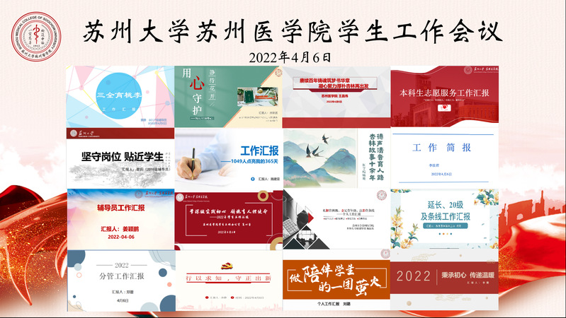 在四方共建的基础上,蕴含新理念、新内涵,吹响“新医科”建设的冲锋号,探索综合性院校医学生学生工作的特色创新之路。苏州医学院全体辅导员们按年级依次进行工作交流,各位老师主要从分管工作及成效、亮点工作及做法、工作难点和措施、后期设想和方案4个方面进行阐述和讨论,研讨氛围热烈。主要围绕工作实际,畅谈总结经验,设想新模式新途径。