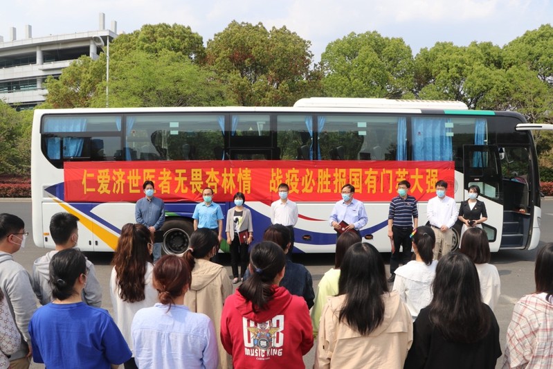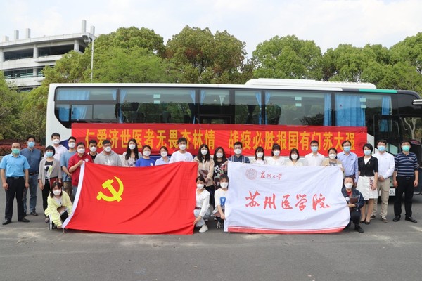 4月12日下午,一支由苏州大学苏州医学院20名骨干教师组成的新冠病毒核酸检测志愿者队伍在独墅湖校区北门集结举行出征仪式。校党委常委、副校长姜建明,党委宣传部、党委教师工作部、医学院、苏州苏大卫生与环境技术研究所有限公司主要负责人出席仪式。仪式由人力资源处处长王云杰主持。
