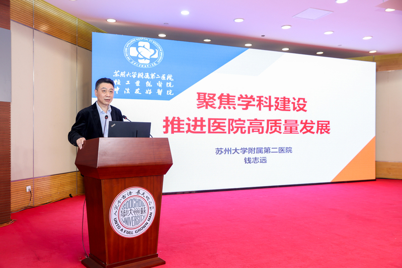附属第二医院副院长钱志远作题为《聚焦学科建设,推进医院高质量发展》的主题报告,介绍了附二院学科建设的成果,高质量发展目标及举措。