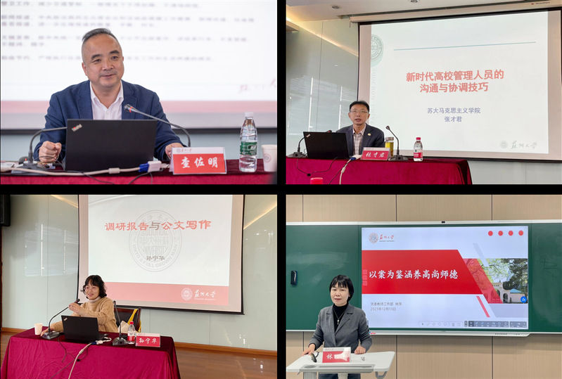 本次系列培训是为深入学习贯彻习近平新时代中国特色社会主义思想和党的二十大精神,以党的理论教育和管理能力培训为重点,邀请校内4名专家,分别以《“领导干部”是怎样炼成的》《新时代高校管理人员的沟通与协调技巧》《调查研究与公文写作》和《以案为鉴涵养师德》为主题,通过引导式、陪伴式教学,帮助青年管理人员提升政治能力、改革攻坚能力、调查研究能力、服务师生能力和抓落实能力。