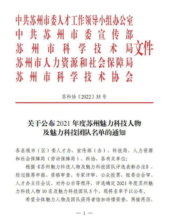 2021年度苏州魅力科技人物(团队)评选结果于日前揭晓,苏州大学心血管病研究所副所长胡士军教授入选“苏州魅力科技人物”。