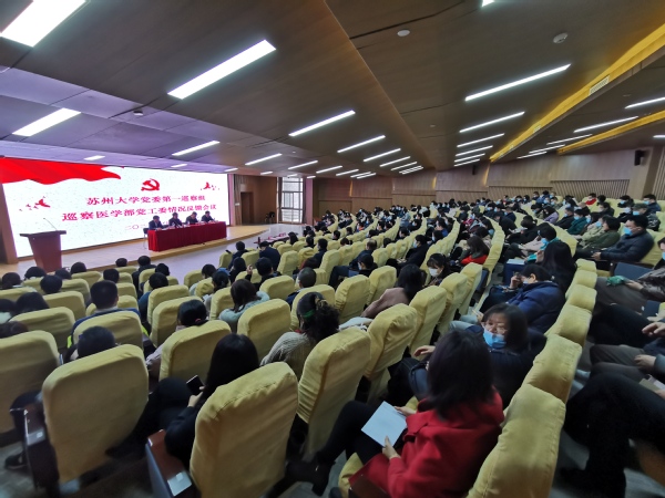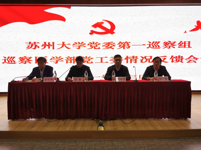 3月3日下午,校党委第五轮巡察第一巡察组巡察医学部党工委情况反馈会议在医学楼四楼学术报告厅召开。参加会议的有校党委副书记、校党委巡察工作领导小组副组长、第一巡察组组长邓敏,副组长徐昳荃和巡察组其他全体成员;医学部全体在职教职员工参加了反馈会。会议由医学部党工委书记邹学海主持。
