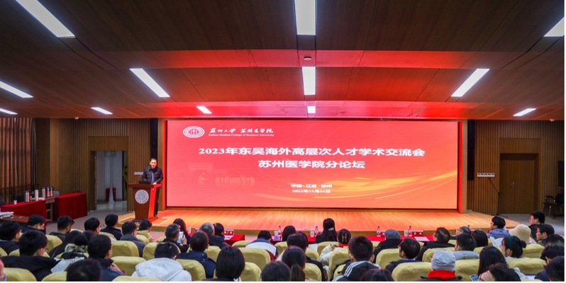 为进一步加强苏州医学院师资队伍建设,吸引更多海外优秀人才加盟,12月26日下午,2023年苏州大学东吴海外高层次人才学术交流会苏州医学院分论坛在独墅湖校区医学楼4楼报告厅举行。苏州大学副校长吴嘉炜,苏州工业园区企业发展服务中心人才服务处主任王佳瑞,苏州医学院执行院长徐广银、苏州医学院护理学院党委书记兼苏州医学院副院长龚政、苏州医学院副院长龙亚秋、苏州医学院副院长钟慧,以及相关办公室负责人,各学院、科研机构,附属医院主要负责人、人事秘书出席会议。会议由苏州医学院党工委书记钱福良主持。