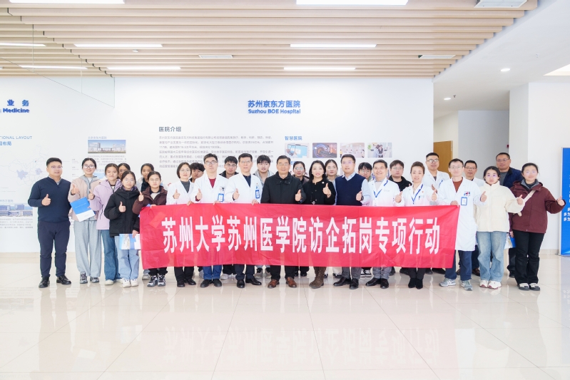 为充分把握寒假促就业关键窗口,推动医学生与行业需求精准对接,1月28日,苏州大学苏州医学院党委书记王欣,党委副书记、副院长孟玲玲,团委副书记李法君,辅导员胡玥与各专业学生代表,先后走访华深智药生物科技(苏州)有限公司和苏州京东方医院。通过实地观摩与座谈交流,搭建校企对接桥梁,拓展学生就业渠道。