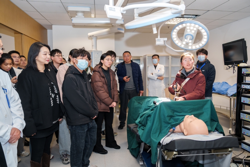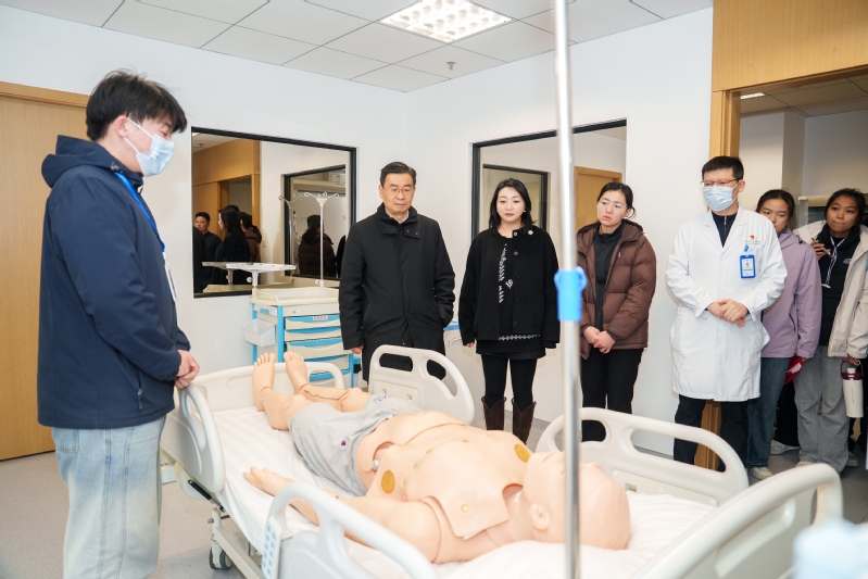 苏州京东方医院党委书记、院长白晓忠,党委副书记、总经理李浩然,医务部主任李乃义,护理部主任张颖,纪委书记、人力资源部兼品牌服务部部长曹晓磊等带领师生参观医院门诊、急诊、抢救指挥中心、临床技能培训中心等区域,师生亲身体验智慧医疗系统与模拟诊疗设备,直观感受临床一线的诊疗流程。