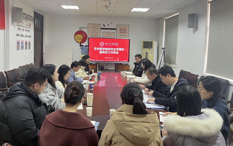 12月27日下午,苏州大学苏州医学院于天赐庄校区维正楼105会议室召开研究生辅导员工作例会。苏州医学院各培养单位专兼职辅导员参加会议,会议由党工委副书记吴德建主持。