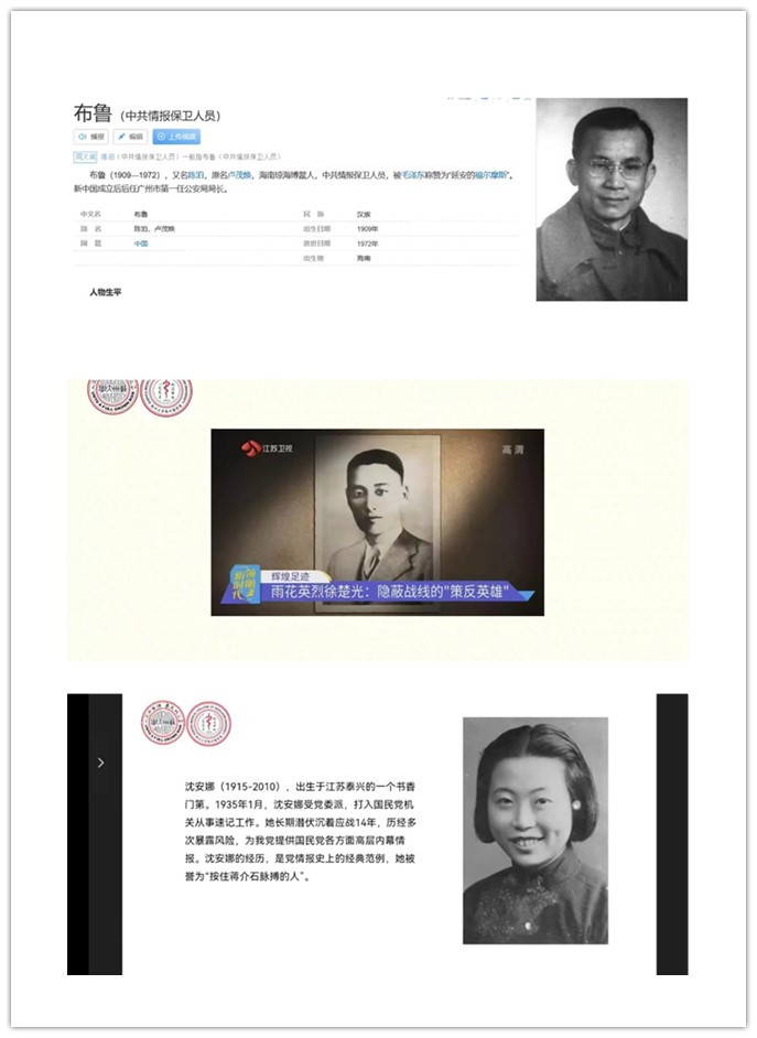 活动主要由六位同学分享隐秘战线故事:杨慧同学介绍了中共隐秘战线的“龙潭三杰”之一的钱壮飞,他1929年底打入国民党中央组织部党务调查科,任调查科主任徐曾恩的机要秘书 ,1931年4月25日,及时获知顾顺章叛变的绝密消息,为保卫中共中央机关的安全做出了重大贡献。殷瞳瞳同学介绍了雨花英烈徐楚光,他从事情报和策反工作20年,成功策动桂系军阀反蒋及汪伪政府警卫三师起义、创建湘鄂民主联军等,为共产党立下不朽功勋,1948年被叛徒出卖,于雨花台英勇就义。杨小丫同学介绍了被誉为“按住蒋介石脉搏的人”的沈安娜,她1935年打入国民党浙江省政府任速记员,长期潜伏沉着应战14年,历经多次暴露风险,为我党提供国民党各方面高层内幕情报。赵余好同学介绍了同样作为中共隐秘战线的“龙潭三杰”之一的李克农,他是我党我军隐蔽战线的卓越领导者和组织者,在长期的革命生涯中,他以对党无限忠诚和高度负责的精神,在关键时刻向党中央提供了决策性情报,为中国人民的解放事业作出了重大贡献。胥琦同学介绍了被毛泽东称赞为“延安的福尔摩斯”的陈泊,1938年他创办了延安保安处第一期侦察情报干部特训班,1942年他一手破获国民党军统“汉中训练班”大案,共抓获已潜入边区的汉训班特务51人,逃跑6人,暴露出特务线索150余条,这是抗战时期延安破获的最大的国民党特务组织。焦敬雅同学介绍了年仅24岁就壮烈牺牲的张露萍,1940年她身份暴露被捕,戴笠对她用尽酷刑,却也未能得到任何关于党的机密。