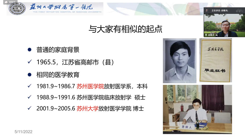 胡春洪教授身兼数职,虽在医疗、教育、科研、管理等方面做出了很多成绩,但他始终认为自己不过是一名普通的医生、普通的老师、普通的科研工作者,而这些工作上的成果不过是日积月累的沉淀。他从“普通人”的背景与身份出发,以更贴近师生的角度,从医疗、科研、教学、管理这四个方面为我们讲述了他36年的从医之路。