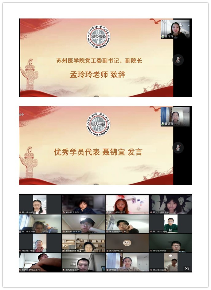 2022年5月11日晚,苏州医学院团校第八期“杏林撷秀”训练营开班典礼暨第一讲通过线上腾讯会议进行。苏州医学院党工委副书记、副院长孟玲玲老师为开班典礼致辞,苏州大学附属第一医院放射科主任、第一临床医学院副院长胡春洪老师做专题讲座,2020级学生聂锦宜作为优秀学员代表发言。本次活动由苏州大学苏州医学院学工办、团委主办,苏州医学院团校承办。