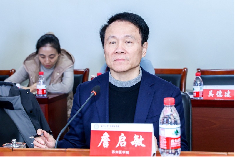 詹启敏作总结讲话,他表示苏州医学院将在学校党委、行政的领导下,积极推进落实“四方共建”各项工作,不断深化医学院体制机制改革,创新教师综合评价机制,合理调整评价指标权重,根据学科发展特色,完善多元化的评价体系;搭建学术交流与资源共享平台,推动学术合作与学科交叉;优化基础设施配置与业务流程,为青年教师成长发展打造优质空间。