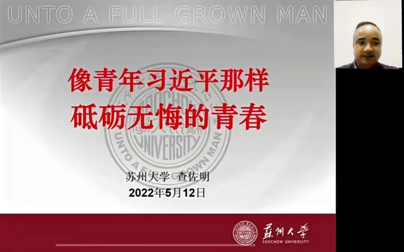 2022年5月12日下午18:30,“像青年习近平那样砥砺无悔的青春”医学院主题人文讲座通过welink平台顺利举办,本次讲座由苏州大学党委组织部副部长查佐明主讲,由苏州大学苏州医学院党工委书记钱福良主持。苏州大学党委研究生工作部部长茅海燕、苏州医学院党工委副书记吴德建、苏州医学院党工委副书记孟玲玲等出席,苏州医学院部分研究生、本科生党员、党校培训学员听取了讲座。