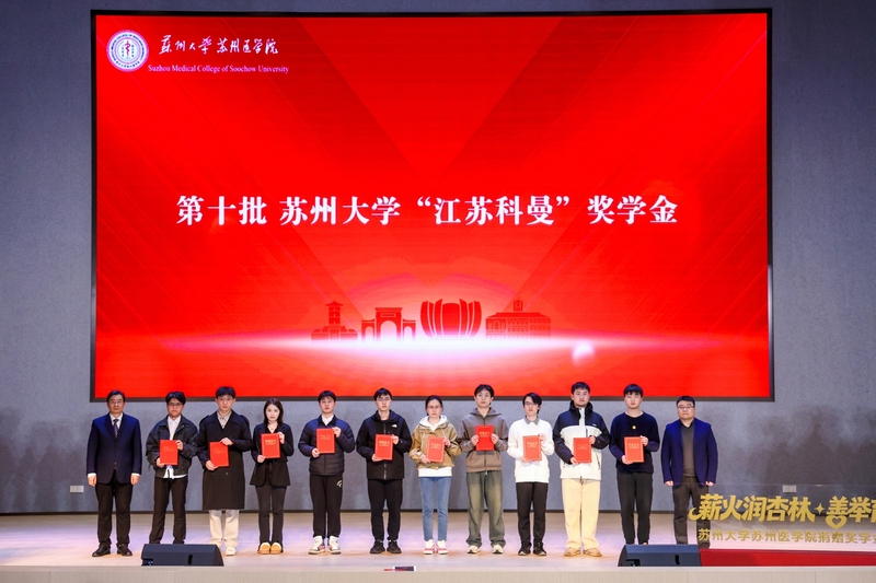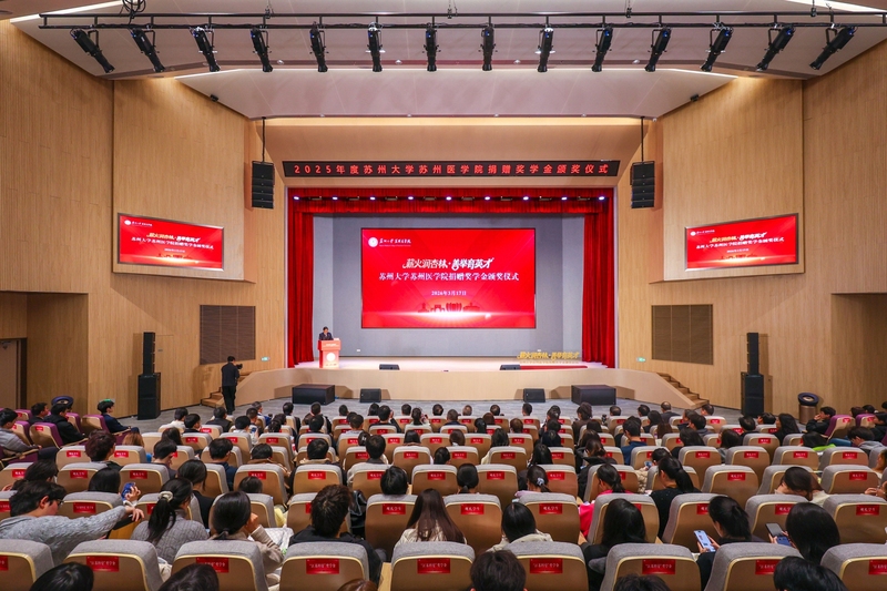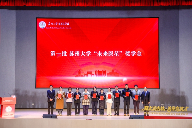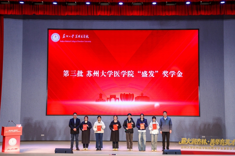 3月17日晚,苏州大学苏州医学院“薪火润杏林,善举育英才”2025年度捐赠奖学金颁奖仪式在独墅湖校区唐楼学术报告厅隆重举行。
