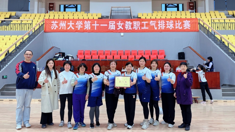 3月18日,苏州大学第十一届女教职工气排球比赛在东校区体育馆圆满落幕。苏州医学院代表队在 27 支参赛队伍中奋勇拼搏,面对光电科学与工程学院、体育学院等强劲对手,队员们团结协作、不屈不挠,全力以赴争取每一分,最终荣获第八名,充分展现了苏州医学院教职工昂扬向上的精神风貌。