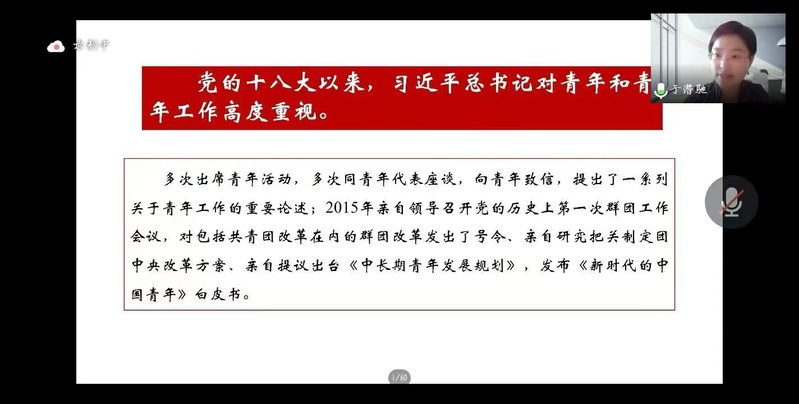 2022年5月25日下午,苏州医学院团校第八期“杏林撷秀”训练营第二讲腾通过讯会议举行。苏州大学团委书记于潜驰老师担任主讲人,以《学习新思想 争做好青年》为题为各位学员和20级、21级团支书带来精彩的座。苏州医学院党工委副书记、副院长孟玲玲老师致欢迎辞,感谢校团委多年以来对医学院团工作的鼎力支持,希望在学校指导下凝聚特色再创新高,苏州医学院全体专职团干部参加。