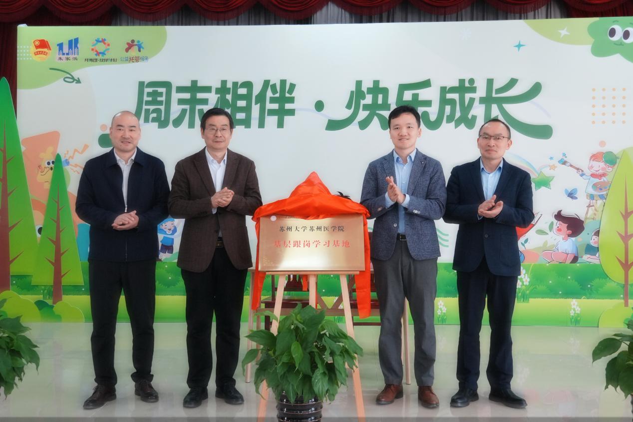 随后,吴德建与管国林分别代表苏州大学苏州医学院与震泽镇朱家浜村村委会,签署了共建基层跟岗学习基地的协议。王欣、吴德建、王潇、管国林共同为基地揭牌。