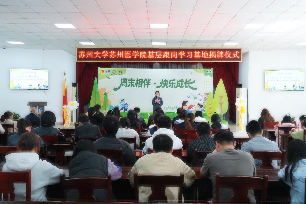 为深入贯彻落实国家关于加快新时代研究生教育改革发展、实施乡村振兴战略的部署要求,充分发挥高校人才智力优势与基层治理实践平台作用,3月28日上午苏州大学苏州医学院基层跟岗学习基地在吴江区震泽镇朱家浜村揭牌启用。吴江团区委副书记朱媛、组少部部长邹明潇,震泽镇党委副书记王潇、团委书记郁颖艳、朱家浜村党委书记管国林,苏州大学苏州医学院党委书记王欣、副书记吴德建、辅导员陈玲、研究生代表等出席本次活动。