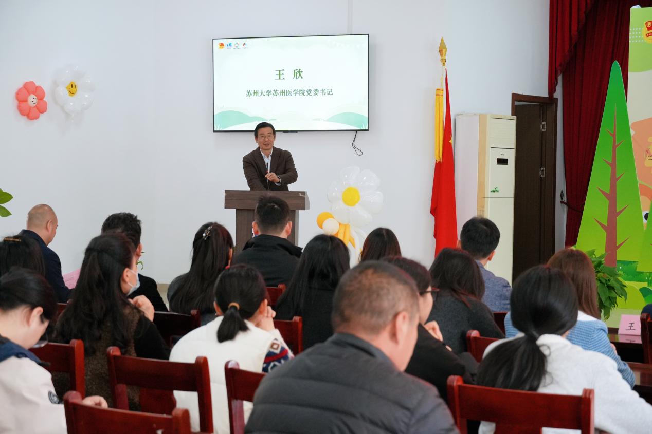 王潇对长期以来关心支持青少年成长事业和校地合作工作的各位领导、师生和同仁表示感谢,他肯定了朱家浜村与苏州医学院以党建为引领,围绕“助老幸福、护小成长”开展的一系列务实合作。他指出,从实践基地到跟岗学习基地,既是合作深化的见证,也是资源下沉的延伸。通过校地携手、双向赋能,既能为乡村振兴注入新的活力,也能更好地满足高校立德树人的实践需求,实现共同发展。