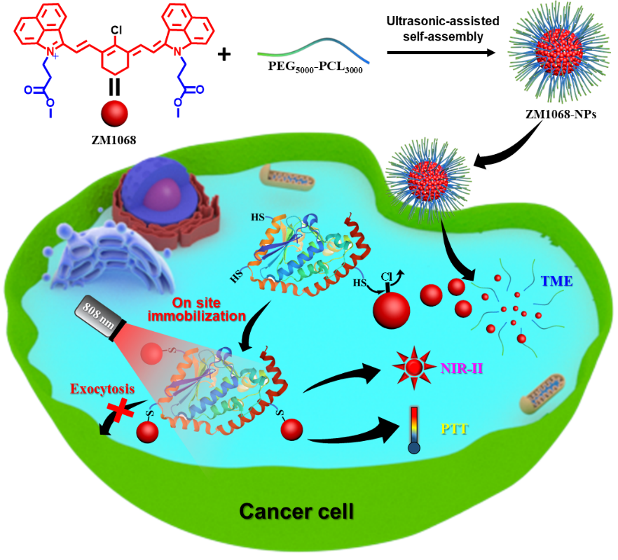 图1. 近红外II区纳米探针ZM1068-NPs的制备及肿瘤的诊疗一体化研究示意图