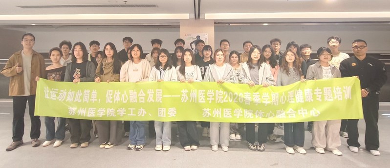 为深化阳光体育与心理健康融合教育,助力学院 “阳光体育节” 顺利启幕,提升班级心理委员、体育委员朋辈互助与春季心理预警工作能力,4月10日下午,苏州医学院在二期文体中心活动室105室,举办2026 春季学期 “阳光体育节” 开幕专题讲座暨春季学期学生心理健康工作培训。本次培训特邀苏州大学体育学院鲁昀杭博士主讲,以《让运动如此简单》为主题,为2025级各班心理委员、体育委员带来一场兼具学术性、实用性与趣味性的“体心融合”专题讲座。