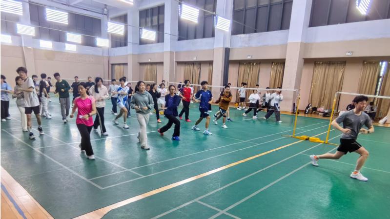 赛事伊始,学工办辅导员叶文涛老师做安全宣讲和鼓励动员。他鼓励同学们放下压力、全力以赴,在比赛中享受运动乐趣,锤炼意志品质。学工办辅导员、羽毛球国家一级裁判员吴嘉欣老师带领全体参赛选手进行专业、规范的赛前热身。