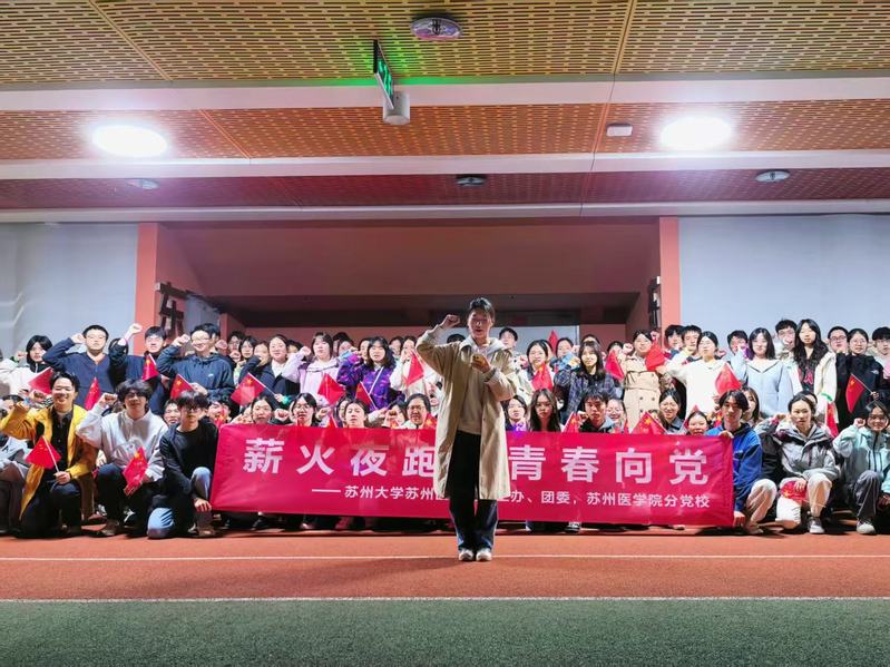 为深入学习贯彻党的精神,创新党性教育实践载体,引导青年学子在运动中强健体魄、淬炼党性、坚守初心,4月13日晚,由苏州医学院学工办、团委、医学院分党校联合主办,苏州医学院学生会、体心融合中心承办的“薪火夜跑·青春向党”主题夜跑活动在独墅湖体育馆跑道顺利举行。党校学员们以脚步丈量初心,以奔跑传递信仰,在星光下书写青春奋进篇章。