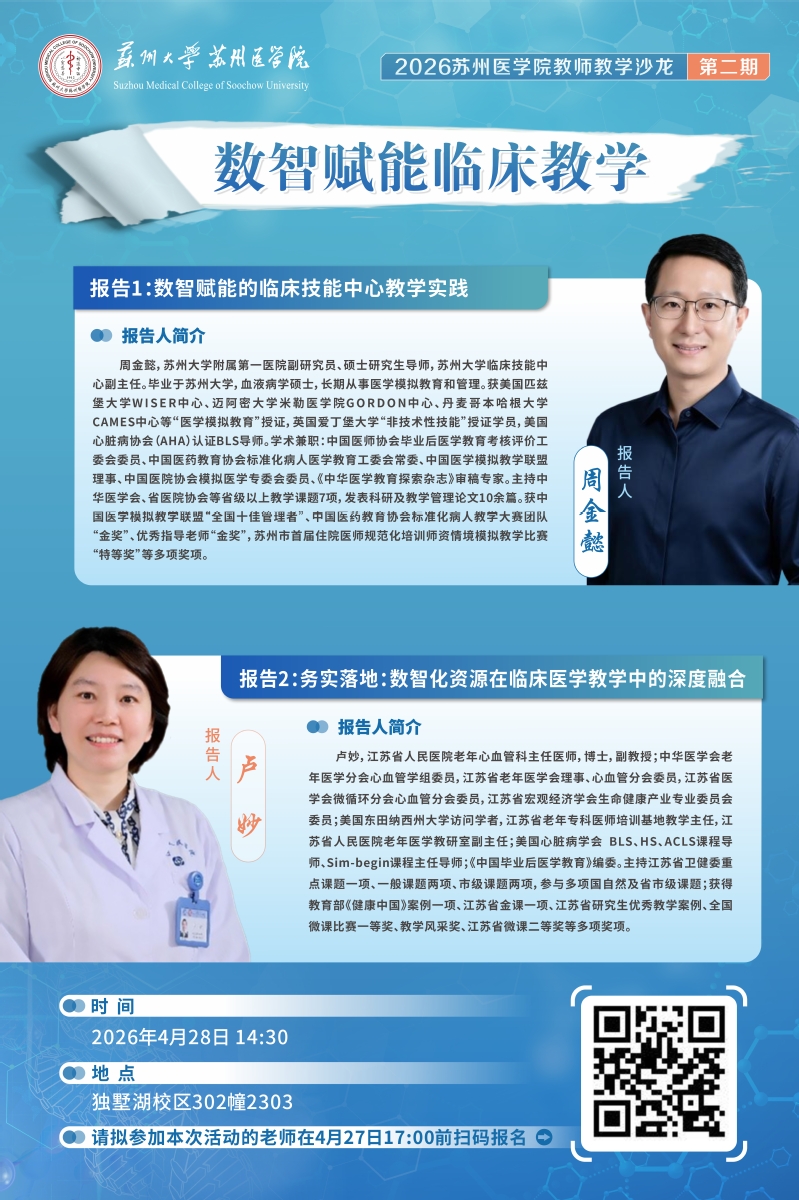 2026苏州医学院教育教学沙龙第二期——数智赋能临床教学