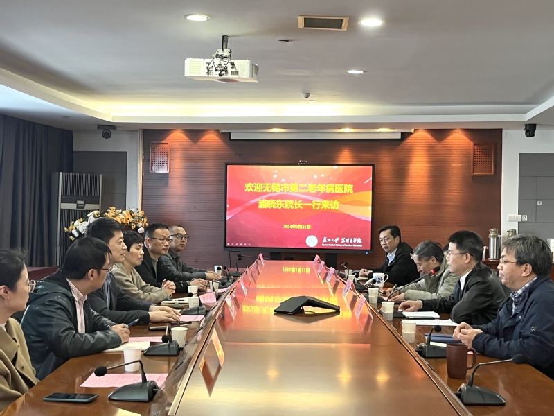2024年3月21日,无锡市第二老年病医院院长浦晓东一行来苏州医学院交流。苏州医学院执行院长李斌,副院长龚政、龙亚秋、宋军等参加座谈会。