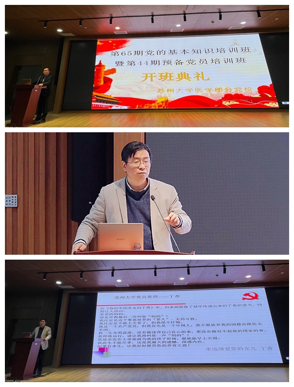 医学部第65期党的基本知识培训班暨第44期预备党员培训班开班典礼及第一讲于2021年3月24日星期三15:30在独墅湖一期医学楼四楼报告厅顺利进行。