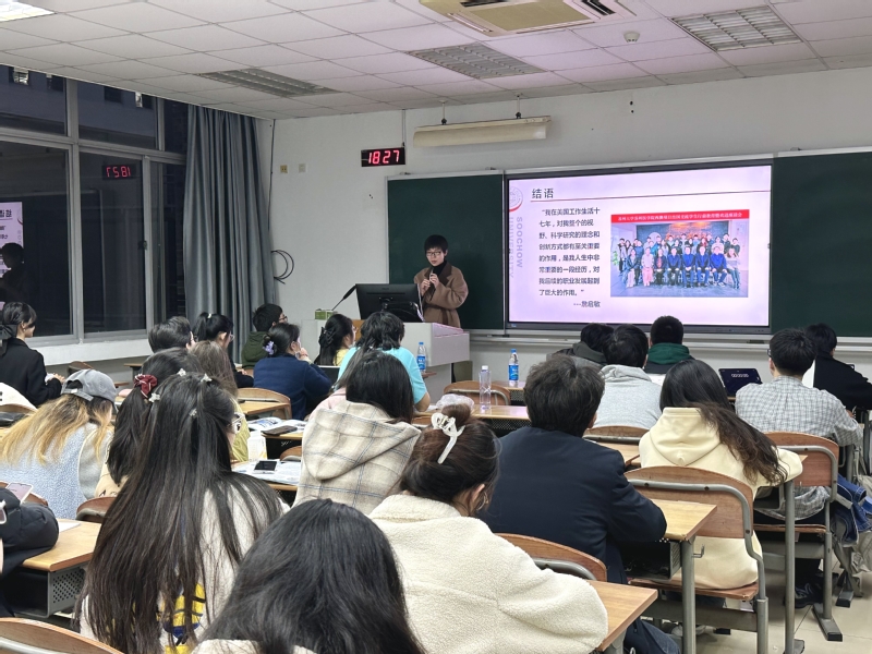 紧接着,苏州大学国际交流合作处副处长资虹老师也为大家带来了精彩的主题演讲。她详细介绍了学校的国际化历史、全球化师资队伍以及多样化的国际项目,生动展现了苏州大学苏州医学院在国际交流方面的努力与卓越成就。资老师还分享了自己丰富的出国交流经历,激励同学们勇于跨越国界,拓展国际视野,并在学术和个人修养上取得更高的成就。