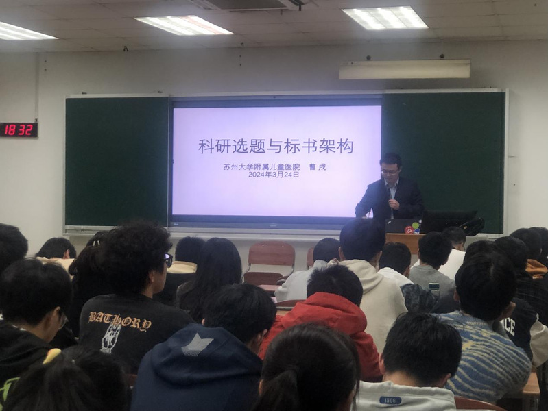 2024年3月24日晚18点30分,苏州大学苏州医学院在独墅湖校区302-2105教室面向儿科学方向本科生展开信仰公开课。苏州大学附属儿童医院主任医师、副教授、硕士生导师、中国妇幼保健协会妇幼微创专员委员会青年委员曹戌担任主讲嘉宾,苏州医学院团委副书记黄静老师与会主持,医学院2022级、2023级临床“5+3”儿科学及儿科学专业共一百余名本科学生参与讲座学习。