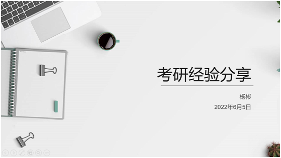 杨彬同学分享了自己的考研经历,从院校专业的选择、不同科目的备考资料和复习安排、心态调整等方面真诚地给出建议,提醒学弟学妹们要注重自己的专业和兴趣爱好,不要盲目跟风,确定目标后持之以恒的为之努力。
