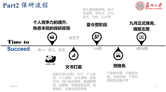 陈彦洁同学结合自身保研和学习经历,从以下四个方面鼓励学弟学妹们积极考研并给出真诚的建议:一、相信苏州大学的生物信息学,也要相信学习生物信息学的自己;二、生物信息可选择的方向众多;三、多多关注院校夏令营信息;四、面试时要全面展示自己。