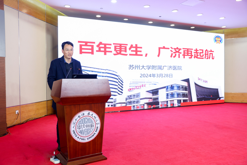 苏州大学附属广济医院副院长张晓斌以《百年更生,广济再起航》为题,进行交流发言,分享了医院的历史沿革,人才队伍建设等方面的情况。