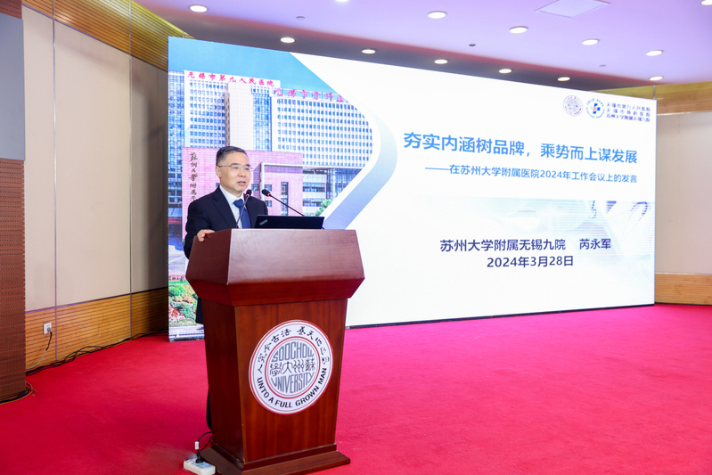 3月28日上午,苏州大学附属医院2024 年工作会议在独墅湖校区炳麟图书馆学术报告厅召开。苏州市卫健委副主任张志芳,苏州大学副校长吴嘉炜,中国工程院院士、苏州医学院院长詹启敏,苏州医学院党工委书记钱福良、执行院长李斌及领导班子其他成员,各附属医院党政主要负责人和分管科教副院长,苏州医学院各办公室(中心)主任、副主任,各临床医学院负责人、办公室主任,各附属医院科教部门负责人参加会议。会议由苏州大学苏州医学院副院长、苏州大学附属第一医院党委书记刘济生主持。