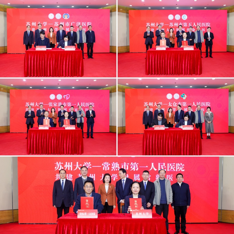 会上,吴嘉炜副校长代表学校分别与苏州市广济医院、苏州市第五人民医院、张家港市第一人民医院、常熟市第一人民医院、太仓市第一人民医院续签了非直属附属医院合作协议。