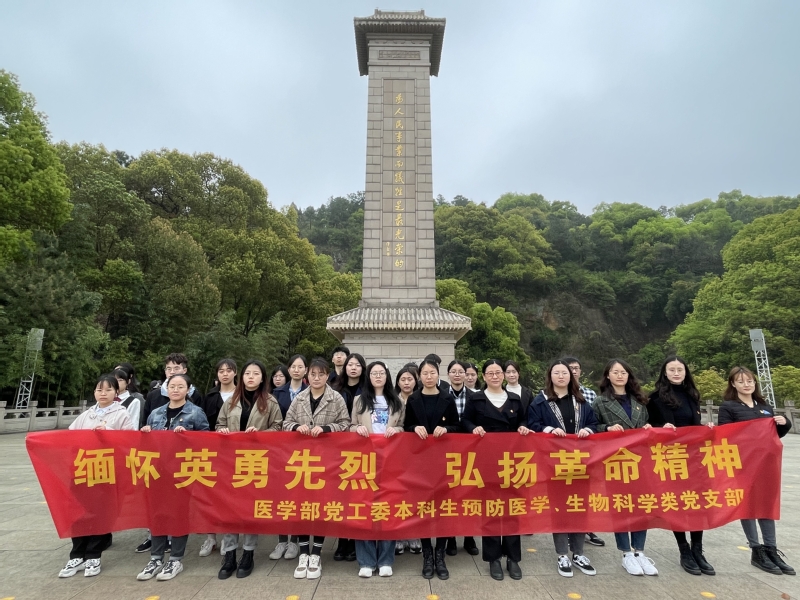 为了庆祝建党100周年,加强党员党史学习教育,缅怀革命先烈,加强革命传统教育,医学部党工委本科生预防医学、生物科学类党支部组织全体党员于4月3日上午前往苏州烈士陵园举行“缅怀英雄先烈 弘扬革命精神” 祭扫悼念活动,并前往五卅路纪念碑处祭奠。