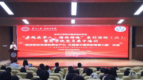 4月11日下午,苏州大学苏州医学院研究生“卓越医学人·培根铸魂”系列活动(二)暨药学院党员集中培训——因地制宜发展新质生产力 为健康中国贡献青春力量讲座在独墅湖校区医学楼4楼报告厅举办。药学院党委书记王欣,研究生辅导员陆政廷、陆菲、李蕾出席讲座。马克思主义学院习近平新时代中国特色社会主义思想概论教研室主任吉启卫教授担任主讲嘉宾。药学院240余位学生党员、入党积极分子现场聆听。