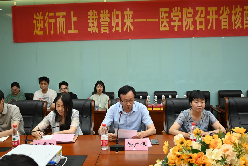 徐广银现场宣读《省疫情联防联控指挥部的表扬信》。信中,省疫情联防联控指挥部对医学院为疫情防控作出的努力表示感谢,并指出医学院积极响应省委省政府号召,遴选精兵强将参加省核酸检测机动队,火速驰援疫情防控一线,为取得疫情防控重大成果,护佑人民身体健康作出了重大贡献。同时表扬核酸检测志愿者在工作中临危不惧、勇挑重担、忘我工作,充分展示了白衣天使精湛的技术、良好的品格和扎实的作风,充分展现了勇于担当、甘于奉献、善作善战的新时代江苏卫生健康人的崇高品格!