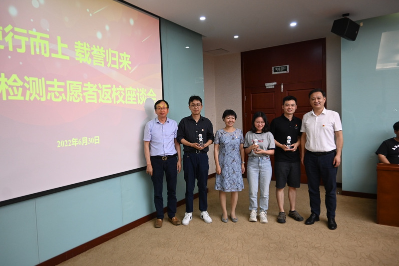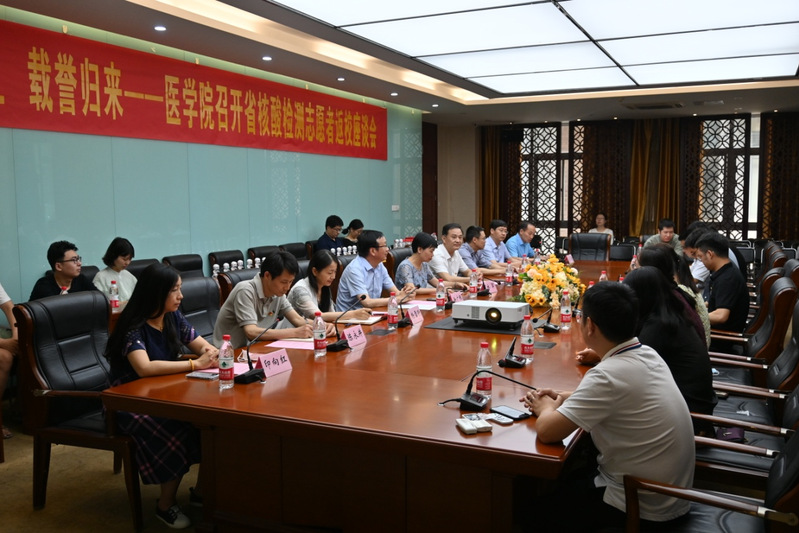 6月30日上午,医学院召开省核酸检测志愿者返校座谈会。苏州大学党委教师工作部部长林萍,医学院执行院长徐广银、医学院党工委书记钱福良、医学院党工委副书记吴德建,以及部分志愿者所在单位领导出席会议。省核酸检测志愿者全体参会,会议由吴德建主持。